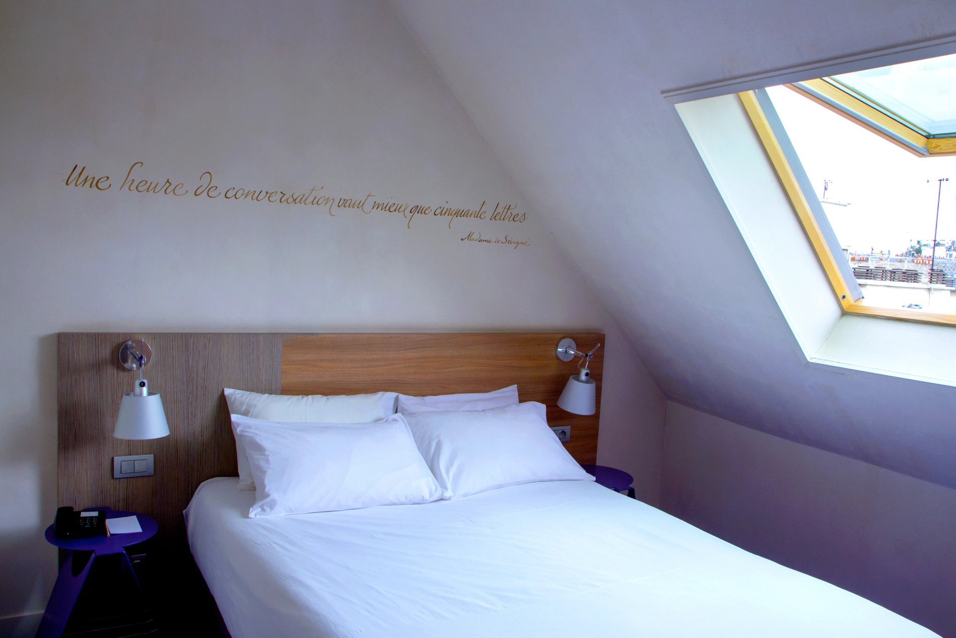 Our 30 m² Junior Suite comfortably accommodates two people in twin beds. With its shower and lounge area, it offers an elegant, bright setting with a view of the street. The lounge area invites you to relax, whether to read, work or simply enjoy a moment of peace and quiet, in a refined atmosphere where comfort and style meet for an unforgettable stay.